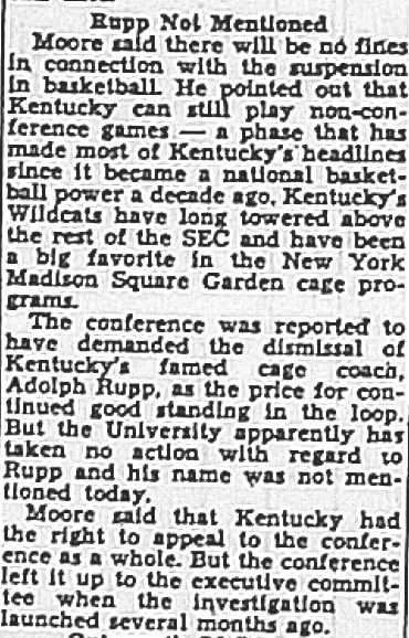 (Excerpted from "No Grad Cagers Remembered," (INS) in Kingsport (TN) Times, January 28, 1954.)