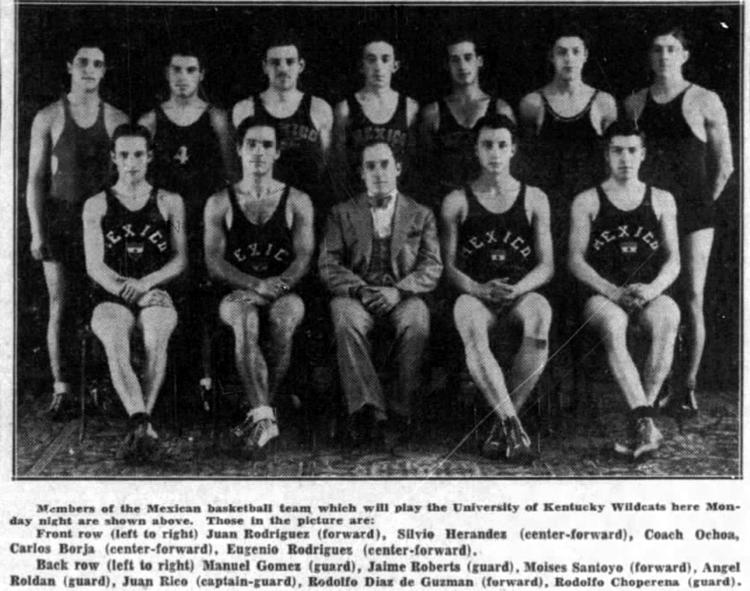 Coach Rupp figured that so far as the actual playing of the game was concerned, Mexico was as much of an enemy as the Vanderbilt Commodores or the Alabama Red Elephant, so he sent his powerhouse into the tilt loaded for bear and with no intentions of entering into a peace pact. In the first ten minutes, the Wildcats made 28 points while the Mexicans - little bit-ty fellows - tried gamely, helpless and somewhat pathetically to halt the slaughter.