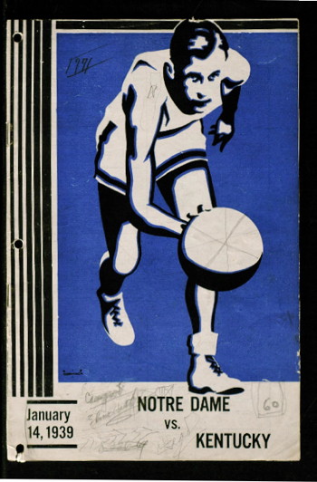 Tubby made it 27-25 when he was fouled by Ertel, but a gratis fling by Capt. Earl Brown and Ertel's setup shot the Irish back into a 28-27 advantage. Farnsley dribbled in for a crip to make it 29-28 for Kentucky, Ziegerhorn gave Notre Dame the edge 30-29 and Curtis overcame it for Kentucky with a nice fielder from the side.