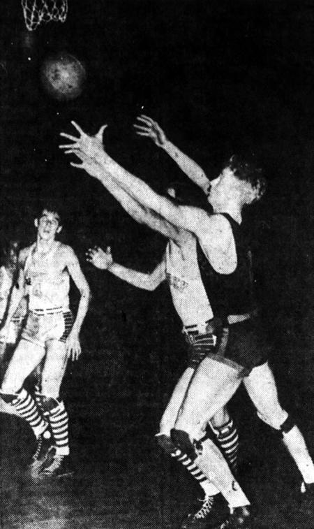 Vandy's Pinky Lipscomb battles Homer Thompson for a rebound while Mickey Rouse (#4) watches