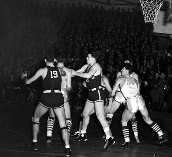 Farnsley missed a foul attempt, but grabbed the rebound and slipped through a southpaw thrust to make the tally 11-4. Prather converted a foul, but Cluggish twisted in another goal and Opper, after grabbing a loose ball at the center of the floor, charged down for a crip making the score 15-5.
