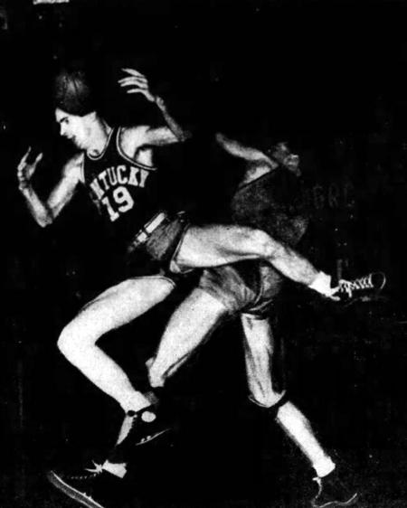 Waller White (#19) flies through the air trying to gain possession of the ball after being fouled by Auburn's Marvin Motley (#15)
