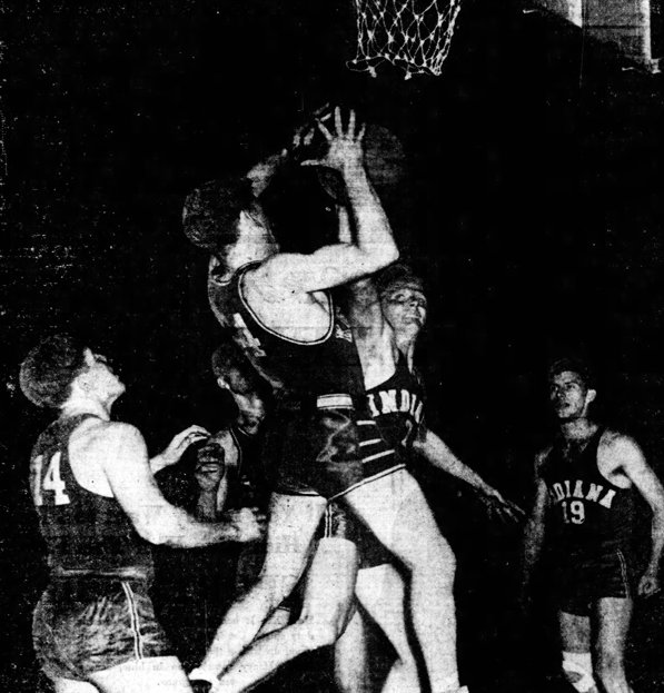 Slim Jack Tingle, the Bedford freshman who started at forward in place of the injured Wilbur Schu, played an excellent rebounding game and had his long shot sufficiently grooved to plump in four field goals. The Whitehead kid, small but smooth, also tossed in four field goals, a couple of them short stabs that reminded the onlookers of Muff Davis, who specialized in those lightning jabs last season. Tom Moseley also operated fluidly.