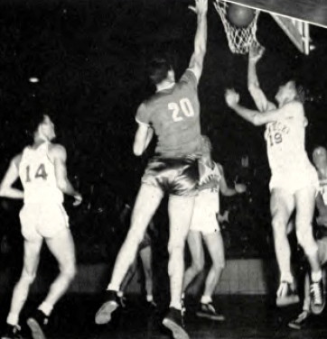 Ralph Beard (#12) drives in against heavy Georgia Tech resistance for a lay-up