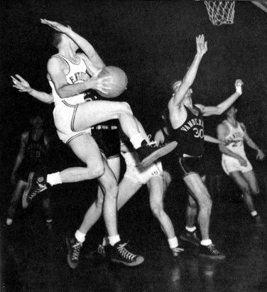 Wallace Jones (#27) and Cliff Barker (#23) wait for the rebound
