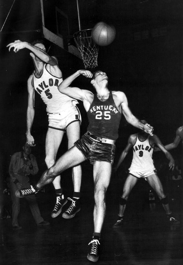 Alex Groza, the tallest man on the floor, was the high scorer for Kentucky and the game. His 14 points were two more than Ralph Beard tallied and four more than Bill Johnson made for Baylor. The latter was unable to handle Groza's height and most of the rebounds were dominated by the 6-foot 7-inch center who was voted the outstanding player of the tournament.