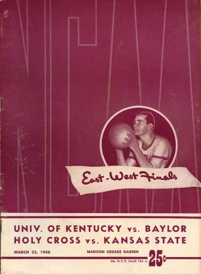 NEW YORK, March 23, 1948 -- Kentucky's Wildcats, at no time in jeopardy, easily conquered Baylor, 58-42, last night at Madison Square Garden and romped to their first N.C.A.A. basketball championship. Off to an early 17-point lead, Adolph Rupp's powerhouse completely outclassed the Bears from Waco, Texas.