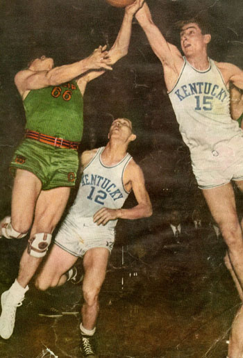 Intermission found the teams deadlocked at 26-all, but Kurland and Renick sparked the 66ers to a 10-point, 37-27 spread within the first five minutes after play was resumed. Then it was up to Kentucky to prove its mettle. Could the Wildcats erase this mountainous deficit ? They did.