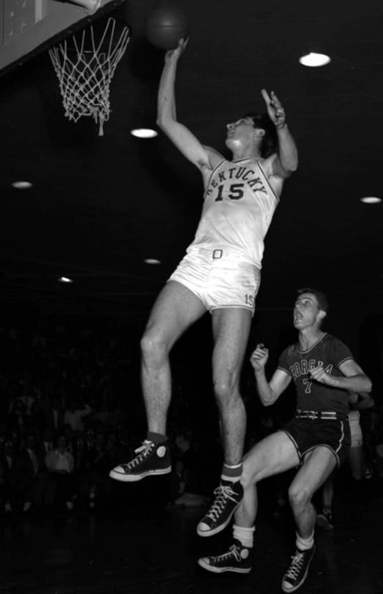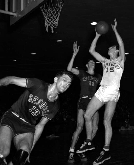 Alex Groza stumbles against the Georgia defender, yet still manages to set an SEC record with 38 points.