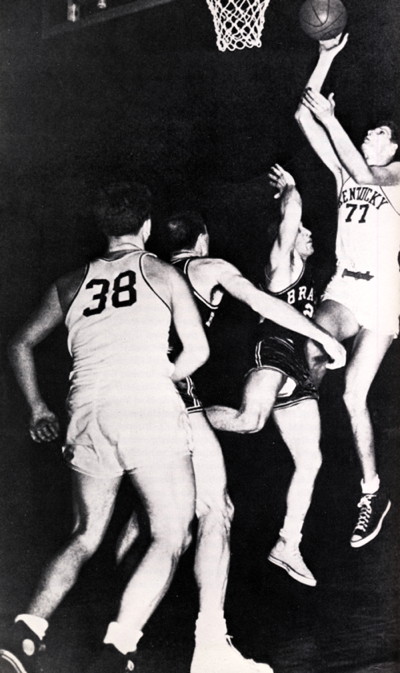 Bradley's Bill Mann (#11) scores inside as the Kentucky players can only watch.