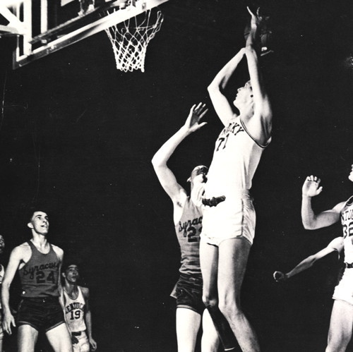 Bill Spivey (#77) shoots inside