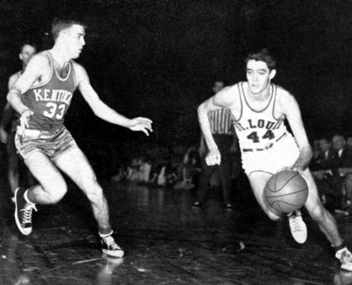 Jerry Koch (#43) for St. Louis drives on Frank Ramsey