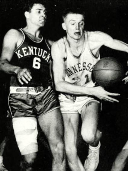 Cliff Hagan (#6) defends against Carl Widseth (#21)
