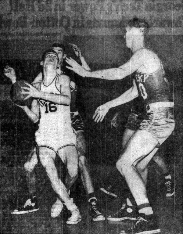 Temple's Harry Silcox (#16) looks to score as he drives against Bob Burrow