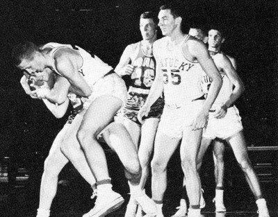 Gerry (#10) Calvert shoots in front of Idaho's Gary Simmons (#6) while Jay Buhler (#9), Bill Bauscher (#10) and Gary McEwen (#18) of Idaho and Ed Beck (#34) of Kentucky look on
