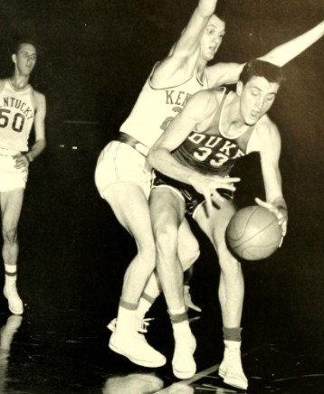 Duke Junior Morgan (#33) makes a move while defended by UK's Jerry Bird (#22). Bob Burrow (#50) looks on from afar