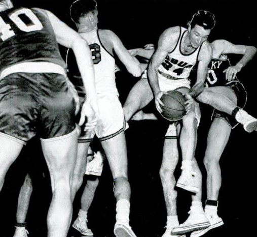 Jerry Bird (#22) lands on Auburn's Brownie Nelson