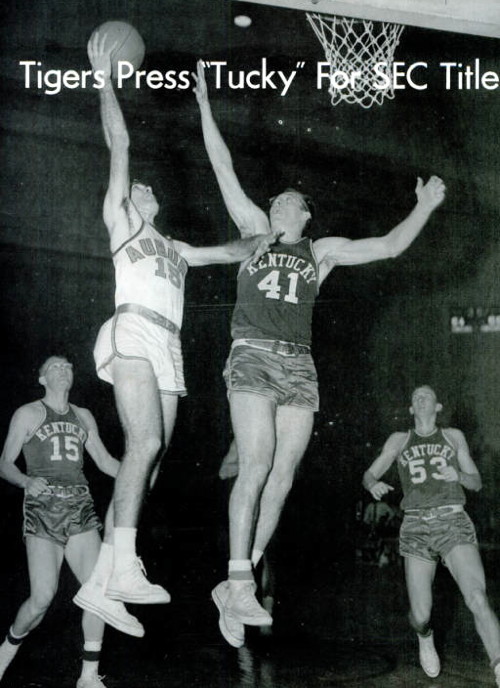 Auburn's #15 shoots against Earl Adkins (#41). Phil Johnson (#15) and Vernon Hatton (#53) watch