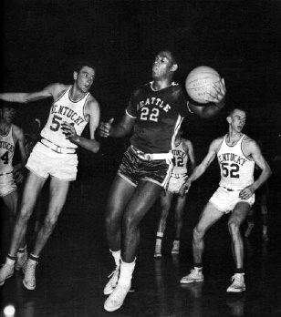 And, despite the fact that Mills had to play the last 17 minutes 44 seconds after Ed Beck collected his fourth foul, Kentucky started to crack away. Mills helped tremendously on the boards and hit the shot that gave UK the 61-60 lead. Cox immediately followed this with a push shot from the circle. Adrian Smith added a free throw to make it 64-60. Hatton then sank a free throw to make it 65-60, missed the second free throw, but grabbed the rebound and fired in a field goal. That made it 67-60 with 4:18 remaining. Suddenly, the Chieftains began to collapse. Seattle would make one last threat with 3:14 left when it came within 68-65, but Cox hit two free throws to put the victory out of Seattle's reach.