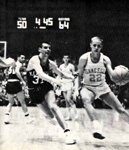 UT's Bobby Carter (#22) drives against Dick Parsons