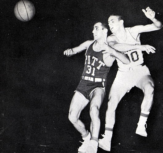 Pittsburgh forward Bill Mauro reaches for the ball behind UK's Carroll Burchett (#40)