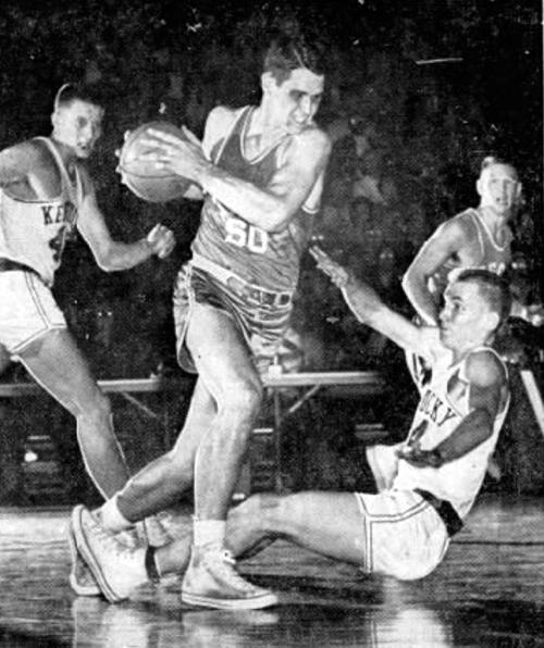 Alan Nass (#50) rips the ball away from UK's Scotty Baesler, who falls to the ground