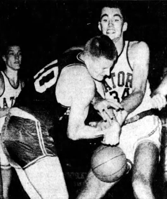 Carroll Burchett (#40) and Florida's Cliff Luyk (#34) fight for the basketball