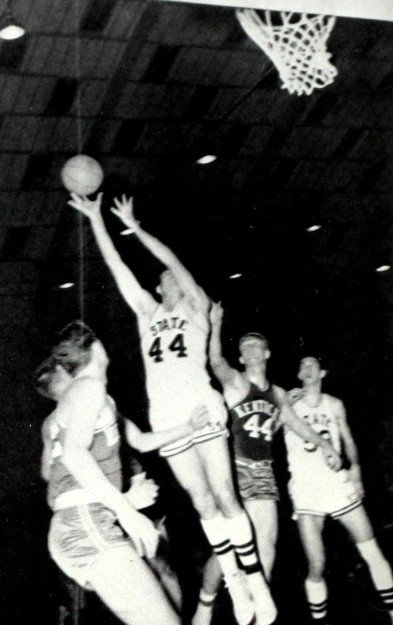 Roy Roberts and a Mississippi State player tie up the ball