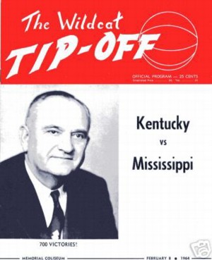 Cotton Nash (#44) looks to make a move while guarded by Ole Miss defenders Charles Huffstatler and Don Davidson. Looking on are Kentucky's Ted Deeken (#12), Tommy Kron (#30) and Mississippi's Ron Steinhart.