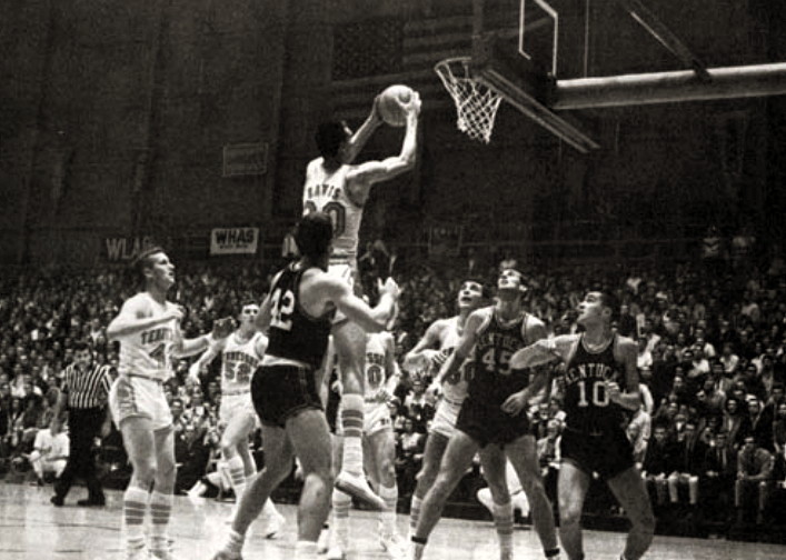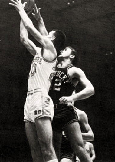 A.W. Davis rebounds in front of Louie Dampier (#10), John Adams (#45) and Pat Riley (#42)