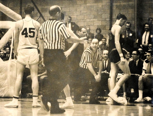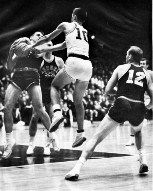 Lou Dampier (#10) grabs for the ball