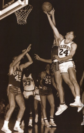 Illinois' Jim Dawson (#24) goes strong to the hoop