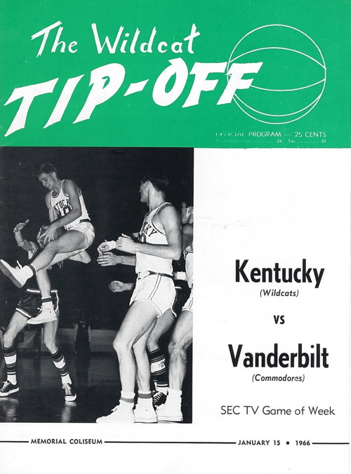 Surrounded by four Commodores, Larry Conley (#40) passes to Tommy Kron (#30) while teammate Cliff Berger looks on