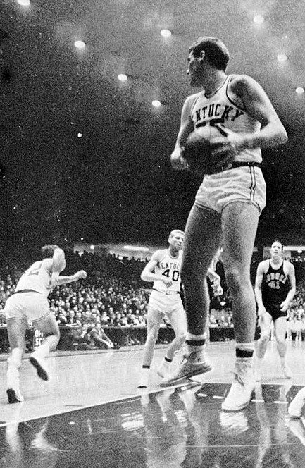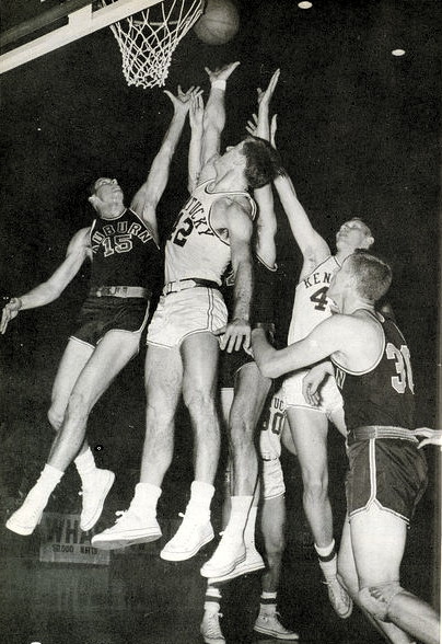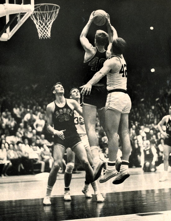 Pat Riley (#42) fights inside against two Auburn players while Cliff Berger reaches for the ball (note this may be the game from 66-67, however Berger is not in that boxscore)