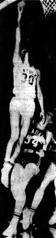Tommy Kron (#30) reaches for the basket ahead of Alabama's Bob Hickey