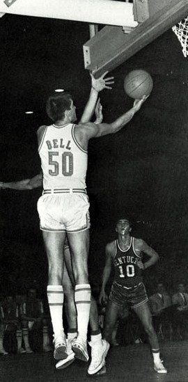 Tennessee's David Bell (#50) tries to score while Louie Dampier (#10) is seen looking on