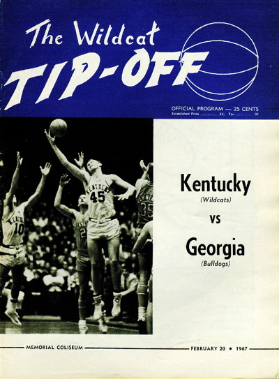 Pat Riley (#42) drives past Georgia Tom Duggins (#31) and Jim Youngblood (#40) for a shot