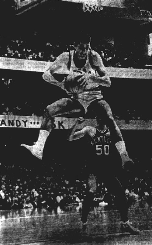 Vanderbilt's Bob Warren skies high for a rebound in front of UK's Gary Gamble (#50)