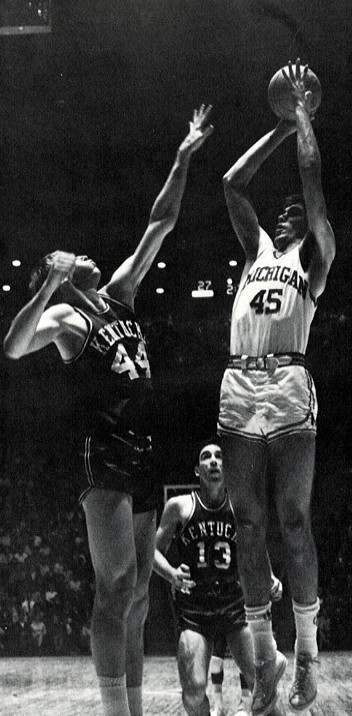 Michigan's Bob Sullivan (#20) shoots in front of UK's Mike Casey (#34)