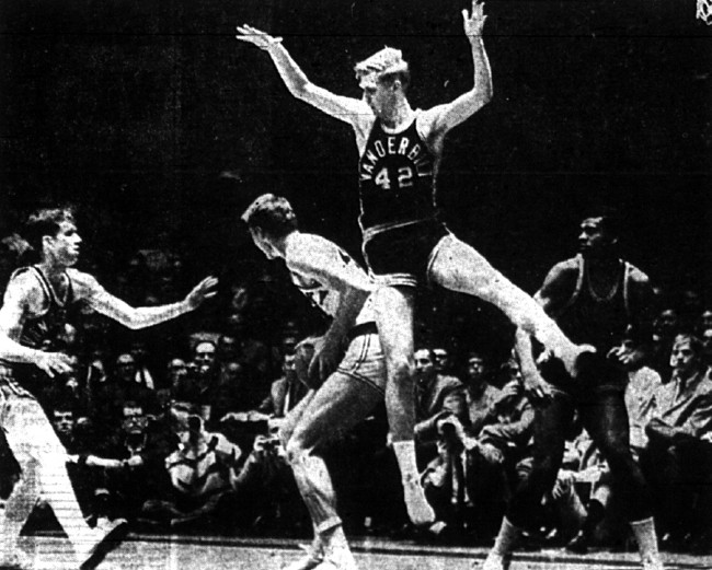 Mike Pratt (#22) battles Vandy's Perry Wallace (#25)