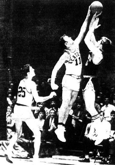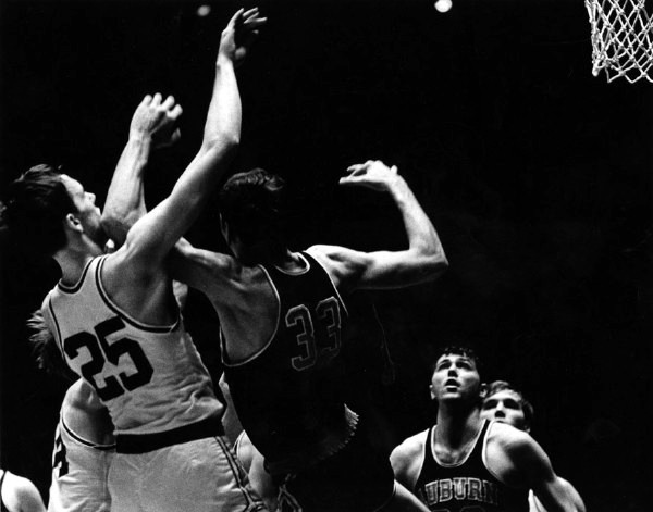 Bob McCowan (#11) blocks the shot of Auburn's John Mengelt