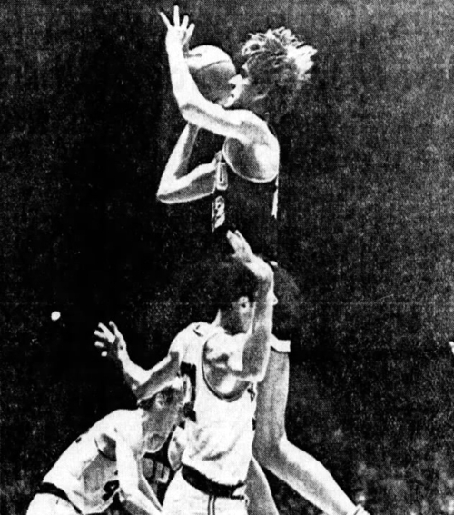 Pistol Pete got the ball near the baseline on the right side of the basket with Kentucky's Larry Steele guarding him closely.