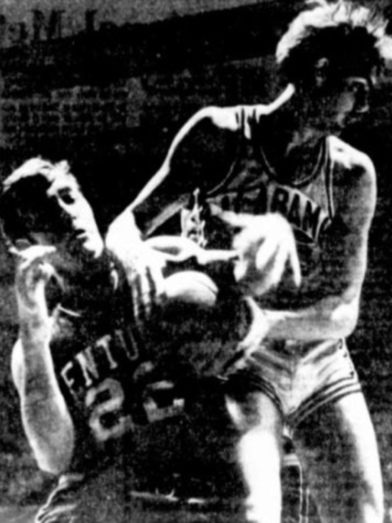 Mike Pratt (#23) fights for the ball with Alabama's Kim Wilkie (#25)