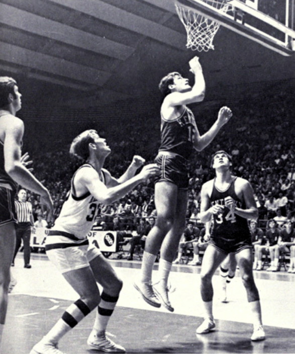 Tom Parker (#12) waits for a rebound while Mike Casey (#34) and Alabama's David Williams (#32) look on
