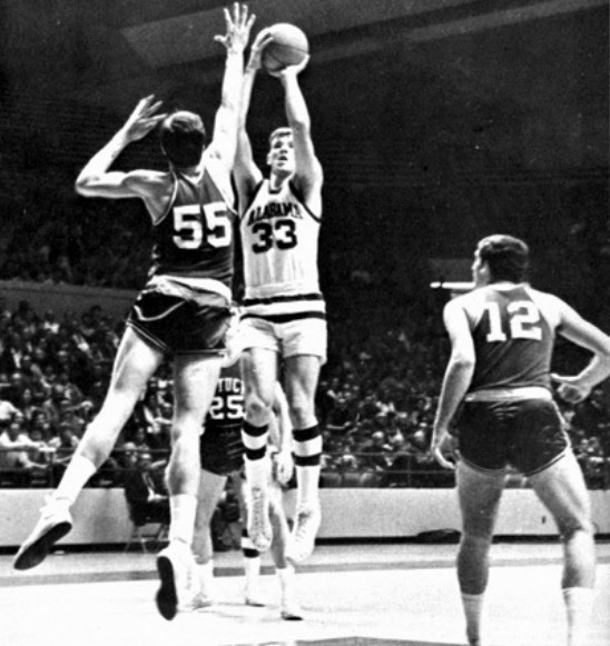 Jim Andrews (#55) blocks the shot of Alabama's Wendell Garner (#23)