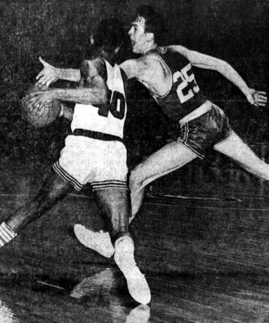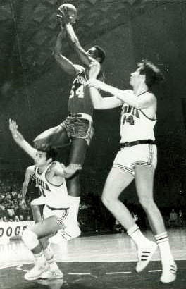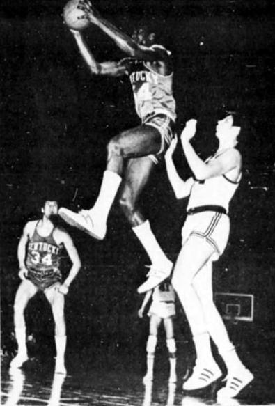 Tom Payne (#54) shoots over Georgia's Gino Gianfrancesco while UGa's Dick Toth can only watch