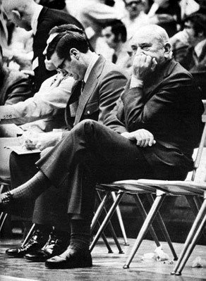 Adolph Rupp sits on the bench as the final minutes, and his career, comes to a close