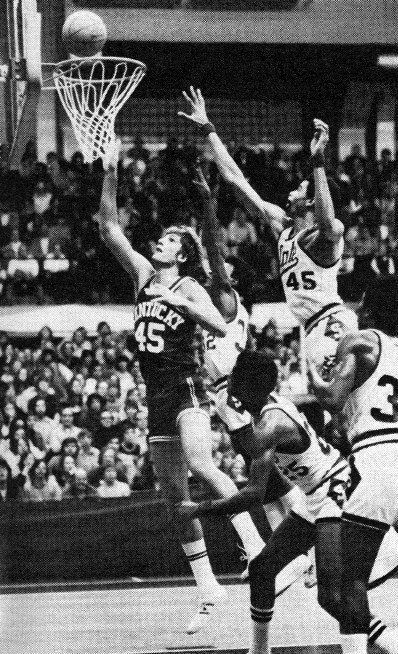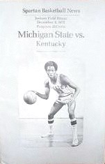 MSU's Lindsay Hairston drives past Jim Andrews (#55)