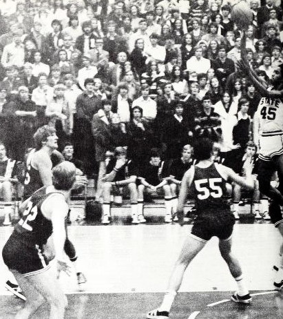 Jerry Jenkins (#45) shoots over Jim Andrews (#55)