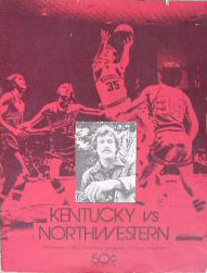 Bob Guyette (#45) drives past Northwestern's Tim Tessley (#43)